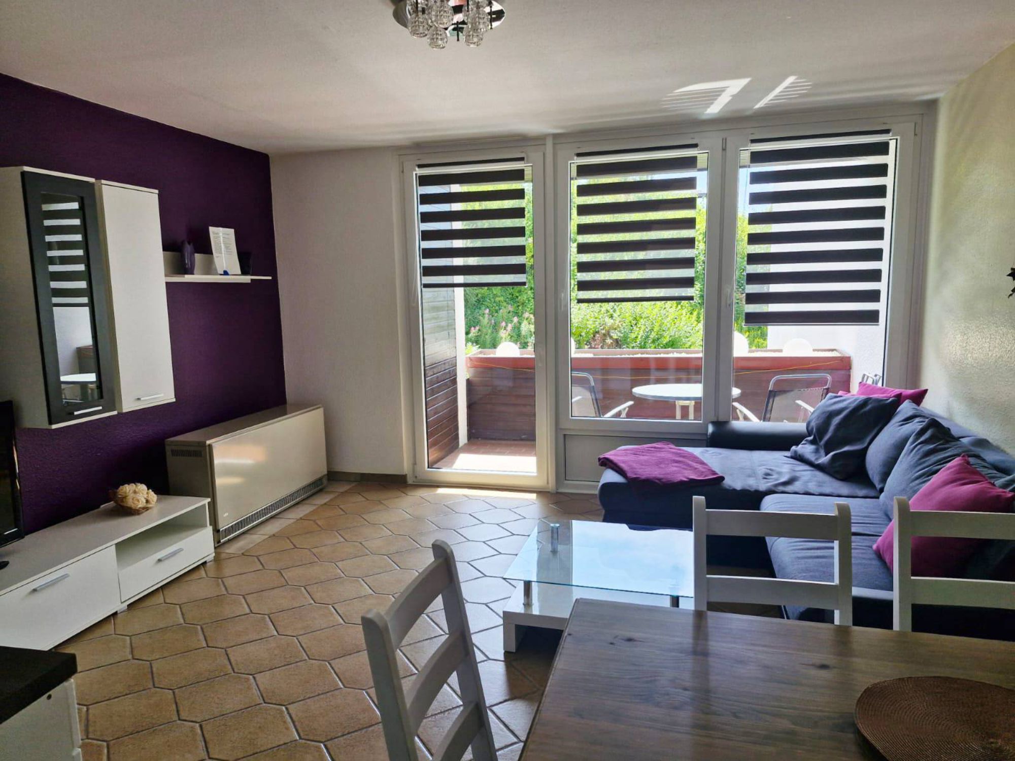 Ihr gemütlicher Rückzugsort für erholsame Tage. Charmante Ferienwohnung, geprägt von warmen Lilatönen und heimeliger Atmosphäre.